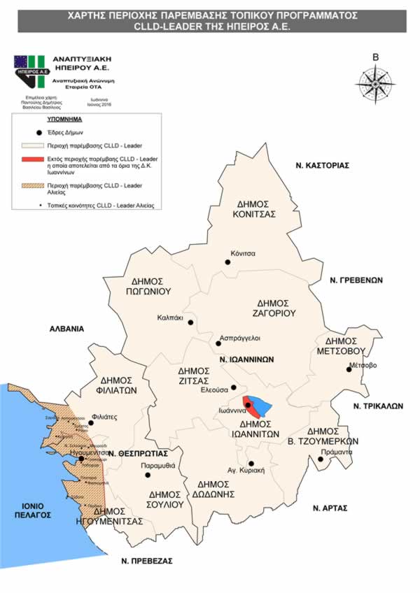 Στον παρακάτω χάρτη απεικονίζεται η περιοχή εφαρμογής του τοπικού προγράμματος CLLD LEADER.
